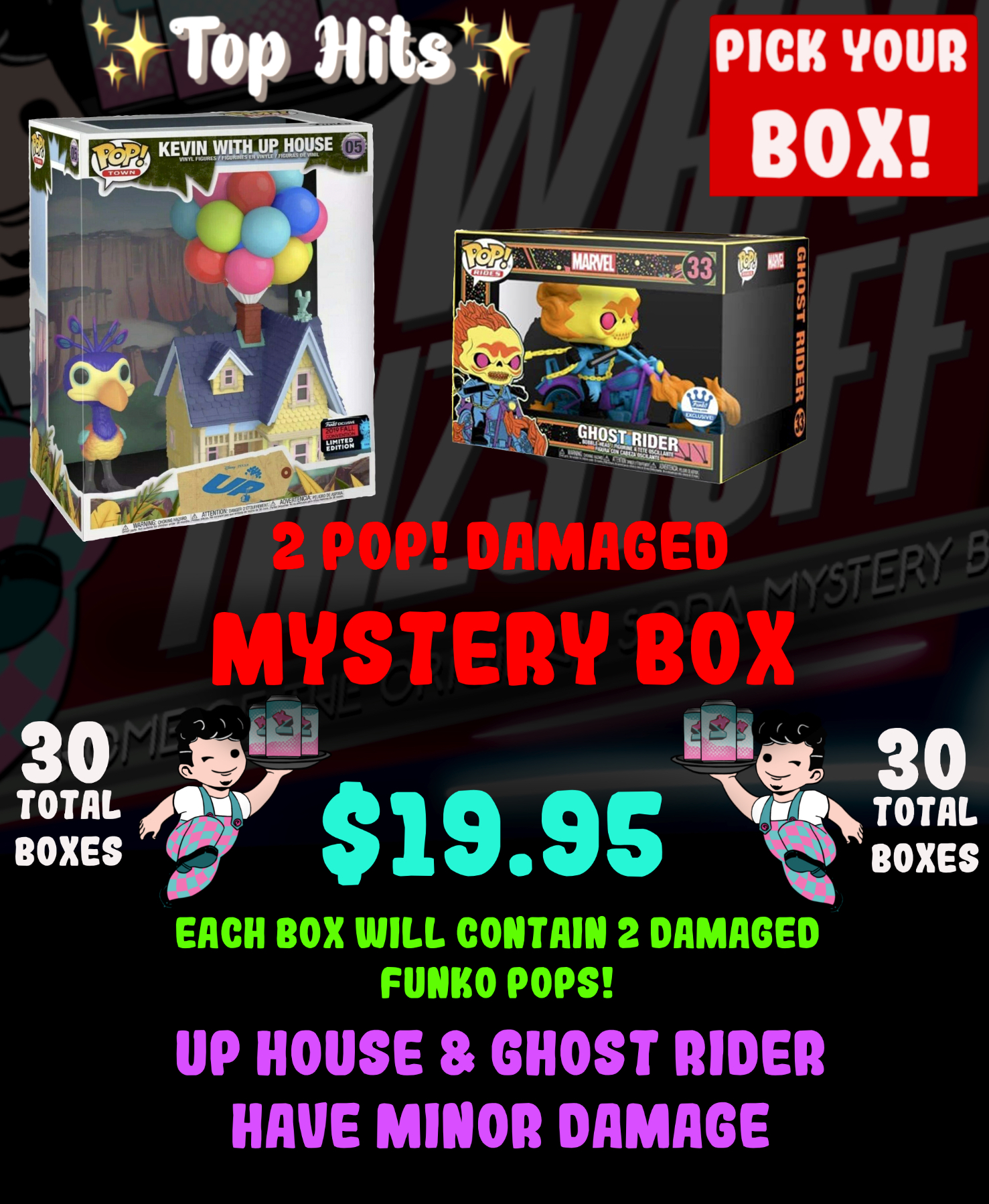 28 boxes contain (2) Damaged Pops! while the other two boxes will contain one of the two top hits.